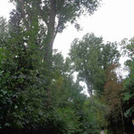 Wenig später erreichten wir den Ortsteil Rheidt und radelten dort weiter auf dem Rheinradweg nach Lülsdorf und Langel. Zwischen diesen Dörfern fließt der Rhein in einem Bogen. Am Ufer befindet sich ein Auenwald, der unter Naturschutz steht. Auenwälder sind in Deutschland nur noch extrem selten zu finden. Sie haben eine wichtige Funktion, da sie als Überflutungsfläche dienen und bei Hochwasser große Wassermengen aufnehmen und zurückhalten können. Wir staunten über die urwaldähnliche Vegetation und die vielen hochgewachsenen Bäume.